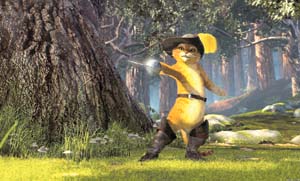 國(guó)王下令逮捕史瑞克一行人一場(chǎng)戲,借用當(dāng)代警匪片和西方電視臺(tái)“真實(shí)現(xiàn)場(chǎng)”類(lèi)節(jié)目的鏡頭語(yǔ)言。史瑞克等人先后被警察圍捕、戴上手銬、投入警車(chē)。一個(gè)細(xì)節(jié)是,貓咪殺手被栽贓,警察從它身上搜出一包海洛因。全身是毛、近乎裸體的貓身上怎么會(huì)夾帶毒品?(王星)