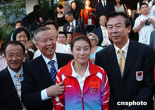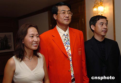 昔日世界冠軍王軍霞現(xiàn)身雅典,在歡迎中國(guó)奧運(yùn)代表團(tuán)的酒會(huì)上,仍然是注目的人物。作者:陳佳