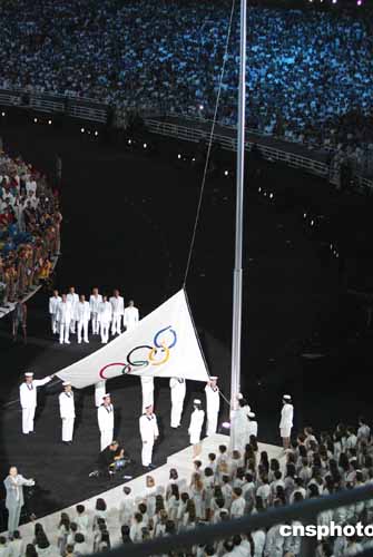 當地時間八月十三日晚,第二十八屆奧運會在希臘雅典開幕,奧運五環(huán)旗在會場緩緩升起。中新社記者:毛建軍