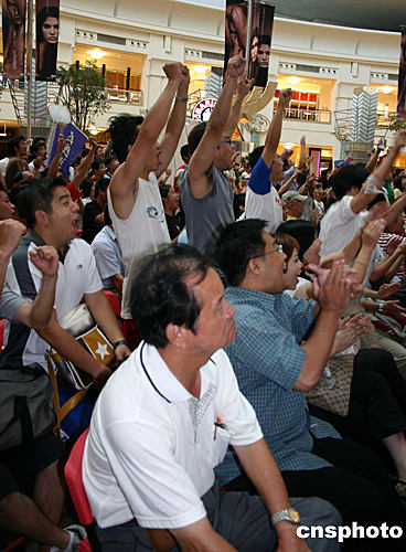 當(dāng)十八時許中國臺北隊以三比零鎖定勝利時,球迷的情緒達到高潮。歡呼聲、笑聲響成一片。一些人許久不愿離去。