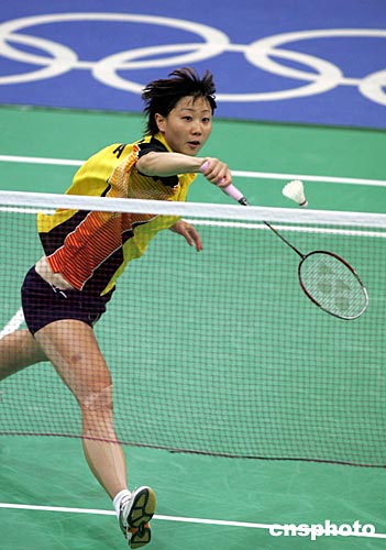 中國參加雅典奧運會女子羽毛球單打比賽的選手周密,當(dāng)?shù)貢r間8月16日以2比0輕松戰(zhàn)勝保加利亞選手佩蒂婭,與隊友張寧、龔睿那一同進(jìn)入前四名。中新社記者:任晨鳴