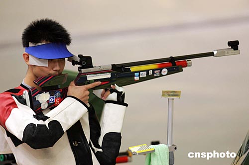 高手如云的中國射擊隊不斷地制造驚喜。就在人們?yōu)樗氖䴕q的老將高娥未能進入女子多向飛碟決賽而惋惜時,不滿二十歲的朱啟南完美演繹了他的奧運“處子秀”,預(yù)賽第一身份殺入男子十米氣步槍決賽,定勝負的十槍只有一發(fā)在十環(huán)以下,七百零二環(huán)的總成績將原世界紀(jì)錄提高了零點二環(huán)。這樣,中國射擊隊三枚金牌的成績已經(jīng)平了以往參加奧運會的最好成績。