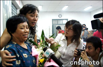 這時,我們也終于看到了陳艷青的媽媽陸榴云展露笑顏,筆者注意到,當陳艷青第一次出場的時候,陳媽媽便開始以手掩面,不敢直電視鏡頭里女兒那矯健的身影,只有在人們的歡呼聲中得知女兒舉起來了,才敢再次注視電視鏡頭。到了后來,陳媽媽更是緊張的說不出話來,在工作人員的幫助下服用了幾顆保心丸才能把心情穩(wěn)定。筆者后來才了解到,原來陳媽媽以前從來不觀看女兒的舉重比賽,今天初此看便是在如此隆重的賽事、如此隆重的場合,不免有點緊張過度了,當女兒最后摘得了金牌,這位淳樸的老人終于如釋重負,當人們問她最想對遠在雅典的女兒說什么時,她激動地說,“陳艷青,好樣的!”