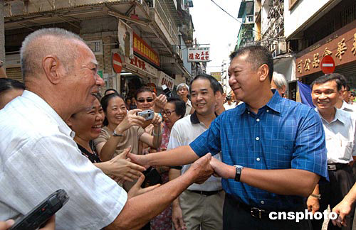 十七日上午,澳門特別行政區(qū)第二任行政長(zhǎng)官候選人何厚鏵繼續(xù)展開了為期二周的競(jìng)選宣傳活動(dòng),在十月初五街何厚鏵與街坊們熱情握手,感謝他們的支持。作者:梁永強(qiáng)