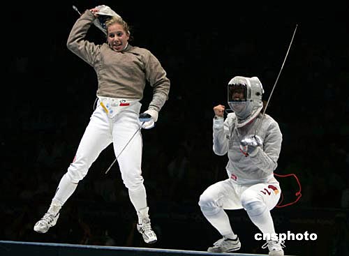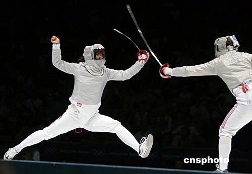 當(dāng)?shù)貢r(shí)間8月17日晚,中國(guó)女劍客譚雪在雅典奧運(yùn)會(huì)女子佩劍決賽負(fù)于美國(guó)對(duì)手,非常遺憾地獲得亞軍。中新社記者:任晨鳴