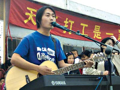 “打工青年藝術(shù)團(tuán)”成立于2002年5月1日,初始團(tuán)員10人,都是來自各行各業(yè)的打工青年,他們利用業(yè)余時間到工地、工廠和小區(qū)給打工者們演出,兩年來共演出了100多場,累計觀眾達(dá)到了20000多人次,在北京打工者中間受到熱烈的歡迎,很多人直接從觀眾加入到了演員隊伍。隨著影響的擴大,他們還成立了“農(nóng)友之家”社會公共服務(wù)機構(gòu),為打工者提供法律咨詢、文化教育、權(quán)益維護(hù)、大眾電腦教室、社區(qū)互助圖書館等多方面的幫助。