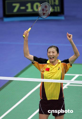中新社雅典八月十九日電 十年恩怨今朝結(jié),二十九歲的遼寧女將張寧今天在奧運(yùn)會羽毛球女單決賽中戰(zhàn)勝老對手張海麗,奪得金牌。