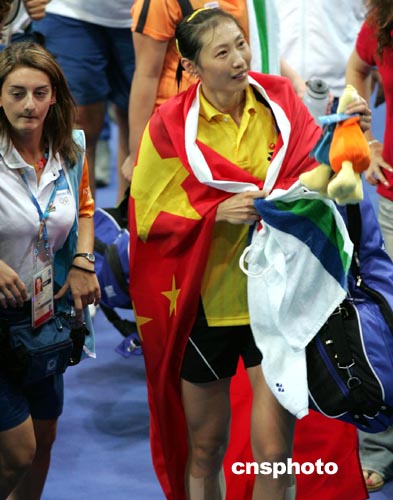 張寧獲勝后扔掉球拍,撲到場外和總教練李永波、女單教練唐學(xué)華緊緊地抱在一起,近幾天頗為郁悶的李永波臉上終于重現(xiàn)笑容。