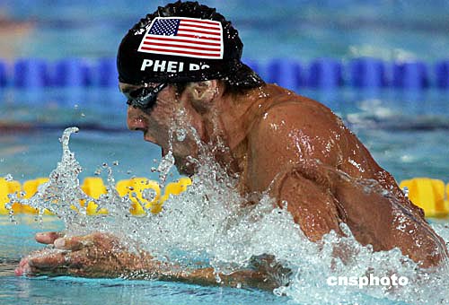當(dāng)?shù)貢r(shí)間八月十九日晚,美國超級明星菲爾普斯在雅典奧運(yùn)男子二百米個(gè)人混合泳比賽中贏得冠軍并打破了奧運(yùn)會紀(jì)錄。中新社記者:毛建軍