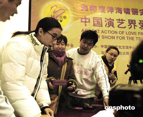 來自四面八方的社會各界人士六日在北京參加“中國演藝界愛心大行動(dòng)為印度洋海嘯賑災(zāi)義演”。