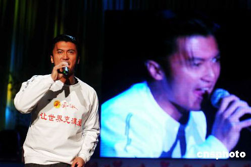 香港藝人房祖名六日在北京參加中國人愛心大行動(dòng)為印度洋海嘯賑災(zāi)義演。