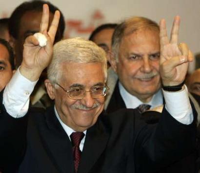 當(dāng)天深夜,法塔赫為阿巴斯獲勝在拉姆安拉總統(tǒng)府舉行慶祝會。阿巴斯?jié)M面笑容,并舉起雙手向數(shù)百名支持者打出兩個“V”字手勢。