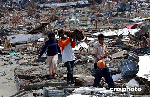 印度尼西亞班達(dá)亞齊災(zāi)民陸續(xù)回到災(zāi)區(qū)清理家園,災(zāi)區(qū)善后仍在繼續(xù)賑災(zāi)情況嚴(yán)峻。作者:洪少葵