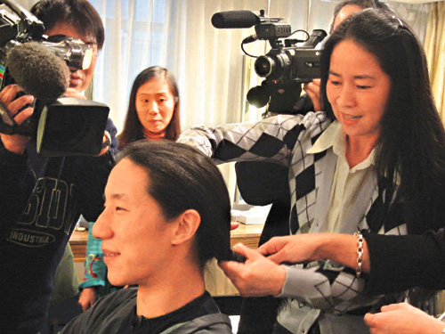 中新網(wǎng)1月13日電 據(jù)上海青年報(bào)報(bào)道,昨(12)日,記者獲悉,龍子房祖名在媽媽林鳳嬌力挺之下改變?cè)煨,繼上次在上海校園活動(dòng)中剪短頭發(fā)之后,再次下決心把長(zhǎng)發(fā)全部剪去,換了一頭清清爽爽的短發(fā)。這不僅讓他的形象更健康、更舒服,而且在他自己看來也是對(duì)小歌迷負(fù)責(zé)。