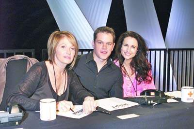 其他出席了慈善晚會(huì)的還有杰米·?怂、娜奧密·華茲、休·格蘭特、詹姆斯·伍茲、安妮特·貝寧、烏瑪·瑟曼、昆汀·塔倫蒂諾、羅伯·洛、小羅伯特·唐尼、羅伯特·德尼羅、德魯·芭莉摩爾和安迪·加西亞等一大批好萊塢知名影星。此外,兩位美國(guó)前總統(tǒng):老布什和比爾·克林頓也一同出場(chǎng),他們受了現(xiàn)任總統(tǒng)小布什的委托,充當(dāng)美國(guó)政府為海嘯災(zāi)區(qū)慈善募捐的先頭部隊(duì)。