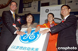 “第三屆北京國際體育基礎設施和場館技術展”一月十八日在北京舉行,作為2005-2012年的全球奧運合作伙伴之一的通用電氣(GE)公司,為觀眾帶來展現(xiàn)未來奧運的新體驗。圖為北京市副市長范伯元(右)、北京市人大常委會副主任林文漪(左二)、中國第一位冬奧會冠軍楊揚(右二)和GE中國公司董事長兼首席執(zhí)行官孫禮達合影留念。中新社記者:張宇
