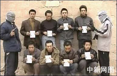 伊拉克武裝分子1月18日公布了一盤(pán)8名中國(guó)工人遭綁架的錄像帶。錄像帶上8名男子都拿著他們的護(hù)照。中國(guó)駐伊拉克大使館已證實(shí)該消息,同時(shí)表示,將盡一切努力營(yíng)救8名人質(zhì)。