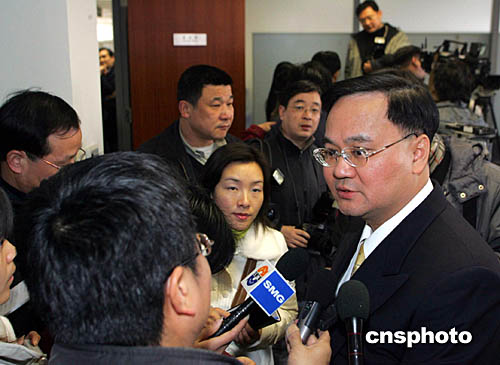 一月十九日,東航與華航在上海簽訂地面代理協(xié)議。圖為華航地勤服務處副處長表示,兩岸春節(jié)包機在臺灣地區(qū)的訂票熱烈程度不比內(nèi)地差,希望兩岸春節(jié)包機今后成為慣例。作者:潘索菲