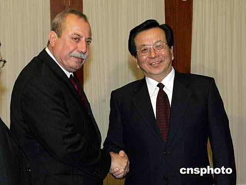 圖:曾慶紅與伊拉克臨時政府副總統(tǒng)沙維斯舉行會談