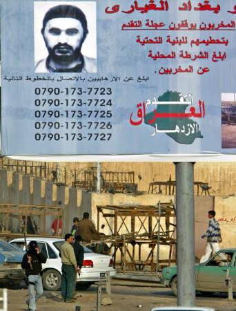 一家網(wǎng)站發(fā)布了這盤血腥的錄像帶。錄像顯示,兩名伊拉克人被捆綁并被蒙住了眼睛。他們身后掛著扎卡維組織名稱的條幅:“基地在伊拉克杰哈德組織”。