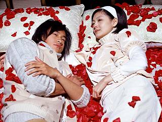 但也因?yàn)椴皇欤螡?rùn)東與大S幾乎沒(méi)話講,還好何潤(rùn)東之前與藍(lán)正龍合作過(guò)“中華英雄”,兩人還常私下相約一起去打撞球,提到藍(lán)正龍,大S也跟著話變多,漸漸地,藍(lán)正龍竟成為兩人的共通話題。拍過(guò)多部戲,何潤(rùn)東在戲中難免應(yīng)劇情需要有一些親熱的鏡頭或床戲,但唯獨(dú)這一次與大S拍床戲,令他既尷尬又痛苦,原來(lái),拍攝這場(chǎng)床戲的前一天,何潤(rùn)東才和藍(lán)正龍拍完“中華英雄”,面對(duì)好友女友,何潤(rùn)東心中難免有顧忌,即使和大S躺在同一張床上,也幾乎不敢碰對(duì)方,偏偏還撒了一床的玫瑰花,宛如早期電視劇的床戲,何潤(rùn)東苦笑說(shuō):“沒(méi)辦法,朋友妻不可戲啊!