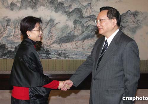 唐家璇在中南海會見以穆閩珠為團(tuán)長的“臺灣海峽兩岸聯(lián)合經(jīng)貿(mào)協(xié)會”參訪團(tuán)時(shí),作上述表示。