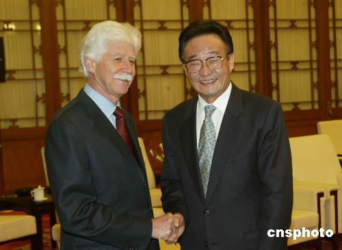 圖:吳邦國會見毛里求斯總理貝朗熱