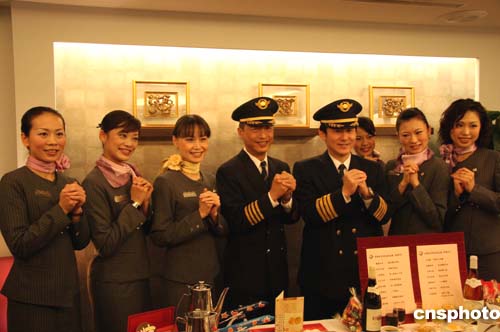 圖:臺(tái)灣“復(fù)興”航空首航臺(tái)商春節(jié)包機(jī)機(jī)組人員