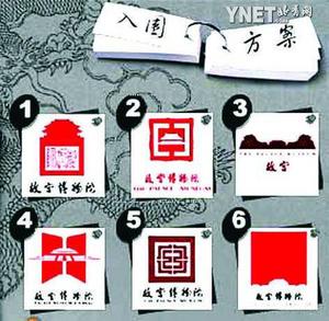 故宮博物院院徽標識設計征集活動于2004年6月開始進行。依據(jù)活動計劃,現(xiàn)公布經(jīng)過復審入圍的6件設計方案,此6件設計方案的著作權(quán)均受法律保護,任何侵權(quán)行為都將受到法律追究。若有人士對公示設計方案的著作權(quán)提出異議,請于2005年2月16日前書面告知故宮博物院院徽標識設計征集活動組委會辦公室。本次活動的詳細內(nèi)容請見《故宮博物院院徽標識設計征集啟事》。