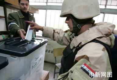 1月30日,一名伊拉克士兵在巴格達參加投票。