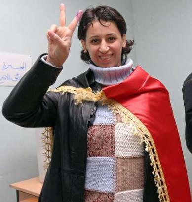 圖:伊拉克婦女投票后做出勝利的手勢(shì)