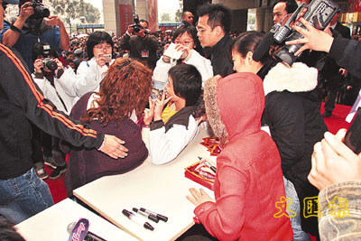 中新網(wǎng)2月1日電 據(jù)大公報(bào)報(bào)道,楊千嬅完成廣州的演唱會(huì)后,日前她與梁漢文(Edmond)出席廣州某卡拉OK新店的開幕儀式上,千嬅和Edmond出現(xiàn),吸引逾千的圍觀者。雖然現(xiàn)場(chǎng)已加派二百名保安維持秩序,也難控制混亂場(chǎng)面,結(jié)果活動(dòng)被腰斬,不少歌迷因?yàn)榈貌坏角?#23301;和Edmond的簽名,最后失望而回,二人也感到不好意思。