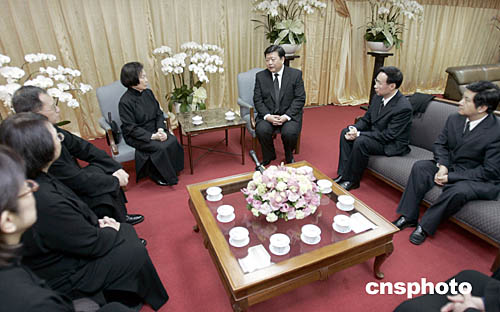 孫亞夫、李亞飛今天下午抵達(dá)臺(tái)北,四點(diǎn)三十五分前往靈堂吊唁辜振甫先生。圖為吊唁后與其家人座談。(臺(tái)灣海基會(huì)故董事長辜振甫先生治喪工作小組提供)中新社記者:邢利宇
