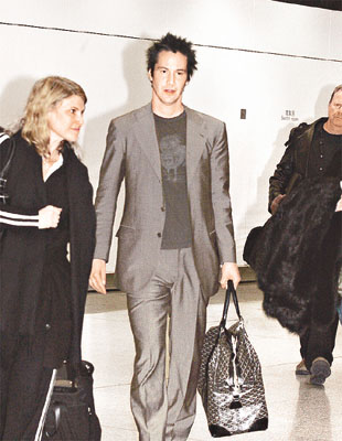 乘坐十多小時機程的基努出閘時略帶倦容,不過仍很友善的向Fans揮手,并上前合照簽名,期間記者蜂擁而上爭相拍照,場面一度混亂,更有女Fans只顧追星連手袋掉在地上也不理。問基努對今次行程有何期望,他說:“希望是一個開心愉快旅程!今次是第一次來香港!”其后他登車往下榻的灣仔君悅酒店,據(jù)知酒店方面特別安排了七架專車接送,派頭十足。