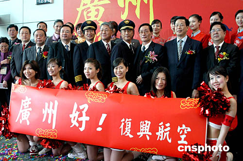 到達廣州后,復興航空的空姐將在首航典禮上當起拉拉隊炒熱氣氛。據知,四日臺灣飛大陸的只有復興航空臺北─廣州,廣州─臺北班機。早上七時二十分起飛,九時抵廣州。
