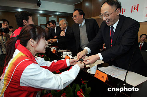 會上,中國奧委會領(lǐng)導(dǎo)向在雅典獲得獎牌的運(yùn)動員代表郭晶晶、馮坤、張寧等頒發(fā)了國際奧委會授予的奧林匹克紀(jì)念章。
