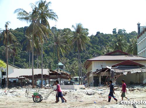 泰國海嘯重災區(qū)披披島有七千噸垃圾需要清理。圖為記者近日在皮皮島清理現(xiàn)場拍攝的工作圖片。作者:王辛莉