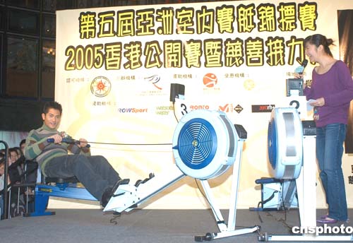 歌影紅星郭富城2月5日在香港出席《第五屆亞洲室內(nèi)賽艇錦標(biāo)賽暨慈善接力賽》記者會,獲委任為“亞洲劃艇之星”,并即場示范室內(nèi)賽艇運動。作者:鄧慶樂