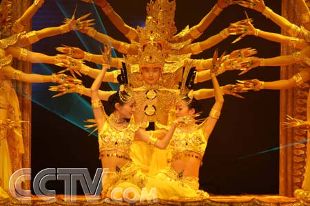 據(jù)該團(tuán)領(lǐng)隊(duì)介紹,這是他們繼雅典版《千手觀音》之后,新改編的第三版,在動(dòng)作編排上加強(qiáng)了舞蹈動(dòng)作的質(zhì)感,增加了千手千眼的變換展示和觀音將愛灑向人間的舞蹈造型,還特別編排了“拜年的動(dòng)作”,其中一個(gè)造型取名為“盛世開屏”,希望借此代表中國(guó)6000萬殘疾人給觀眾帶去美好的祝福。