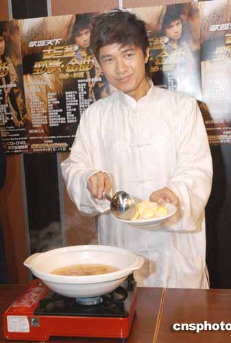 歌星古巨基2月8日在香港出席其最新專輯“勁歌金曲新曲+精選”白金銷量祝捷會(huì),他親自制作“黃金元宵”,令祝捷會(huì)充滿過年氣氛。作者:鄧慶樂