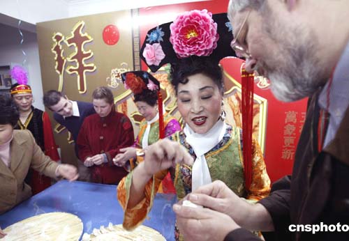 二月八日是中國傳統(tǒng)的除夕之夜,來自法國、英國等國家的六十余位外國友人在北京朝陽麥子店街道社區(qū)度過了一個極富中國傳統(tǒng)民俗特色的除夕之夜,他們與社區(qū)居民一同看演出、品嘗中國傳統(tǒng)美食、對對聯、學做中國手工水餃。作者:任海霞