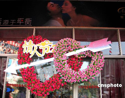 2005年2月11日下午,江蘇省如東縣的商家們“情人節(jié)”促銷忙,各種與節(jié)日有關的商品琳瑯滿目,各種標識十分搶眼。作者:王必春