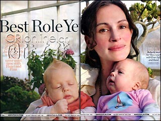 懷孕期間,朱莉亞·羅伯茨仍在堅持拍戲。2004年底,有她參演的兩部電影同時在影院上映,分別是《十二羅漢》和《偷心》。