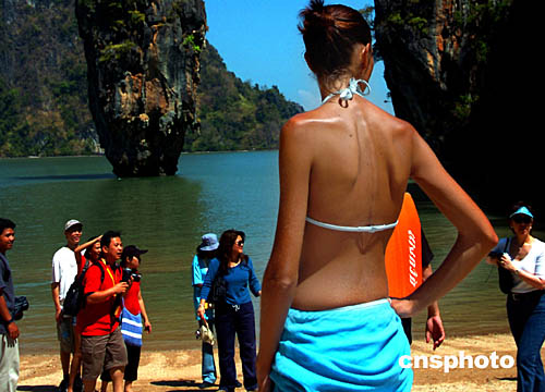 2月中旬的泰國布吉島一處箸名旅游景點(diǎn),游客絡(luò)繹不絕,游性濃厚。海嘯地震過后,到這里旅游的客人日益增多,當(dāng)?shù)芈糜螛I(yè)正在逐步復(fù)蘇。作者:宋吉河