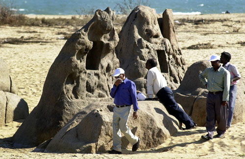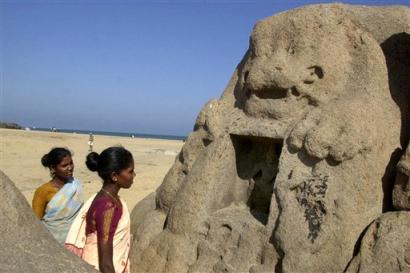 印度沿海水底古城馬哈巴利普蘭所在地是海嘯災區(qū)之一,海嘯過后,該城鎮(zhèn)附近露出三個石結構,上面都刻有精細的動物畫像。這是因為海嘯過后,覆蓋在結構上的沙層被沖走。印度考古研究所高級考古學家薩蒂亞穆蒂說,這些結構,可能屬于這個建于七世紀的港口城市。