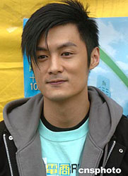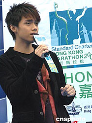 圖為香港歌手張敬軒和余文樂19日在香港金紫荊廣場出席2005渣打馬拉松(香港)嘉年華活動﹐為觀眾獻歌。