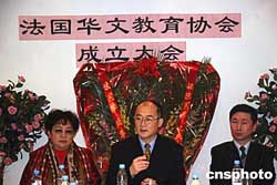由法國從事華文教育的各界人士組織的法國華文教育協(xié)會,二月十九日在巴黎成立。圖為國務(wù)院僑辦副主任趙陽(中)在成立大會上致辭。作者:鐘誠