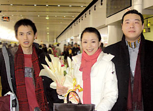 中新網(wǎng)2月22日電 據(jù)上海青年報(bào)報(bào)道,柏林電影節(jié)獎(jiǎng)杯的照耀下,《孔雀》熱了,《孔雀》演員回國(guó)在機(jī)場(chǎng)也受到媒體的隆重接待。女主角張靜初剛下飛機(jī),一臉興奮,她的新片《芳香之旅》本周即將開機(jī),和范偉演對(duì)手戲。