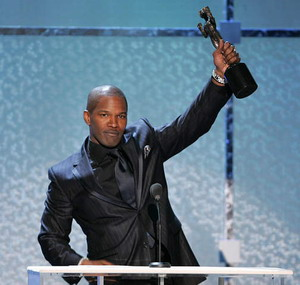 今年無(wú)疑是屬于杰米?怂沟囊荒,除了以《雷》片入圍奧斯卡影帝外,他還以《借刀殺人》提名奧斯卡最佳男配角獎(jiǎng),表現(xiàn)極為耀眼。而靈歌王雷-查爾斯生前最后的專輯在本月舉行的格萊美頒獎(jiǎng)禮上獲得八項(xiàng)大獎(jiǎng),也為杰米?怂箚(wèn)鼎奧斯卡小金人增添了砝碼。