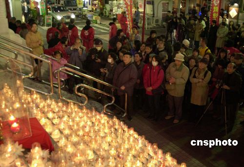在橫濱中華街關(guān)帝廟前,當(dāng)?shù)厝A人華僑正在舉行獨(dú)具特色的“元宵祭燈籠祭”:用蠟燭配上蓮花底座,做成一盞盞祥和溫馨的“祈福蓮花燈”,再在外面罩上用彩筆寫上“招財(cái)進(jìn)寶”、“平安祈!,“合和美滿”、“生意興隆”,以至“世界和平”等祈愿字樣的透明燈罩,整齊地?cái)[放在廟前的臺階上。在近千盞帶有眾人心愿的蓮花彩燈映襯下,平日肅穆的關(guān)帝廟此時(shí)也顯得溫情脈脈,一派祥和。
